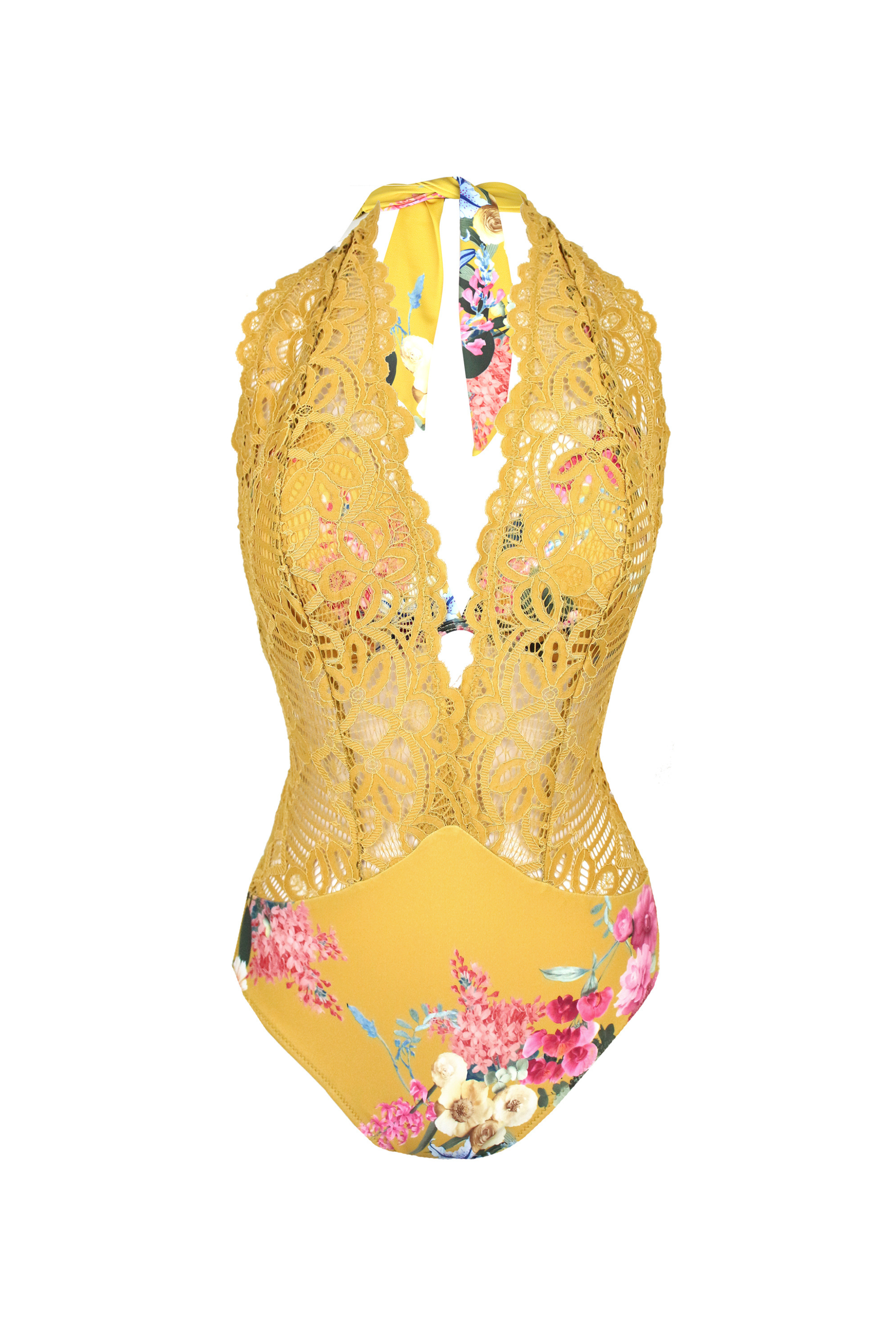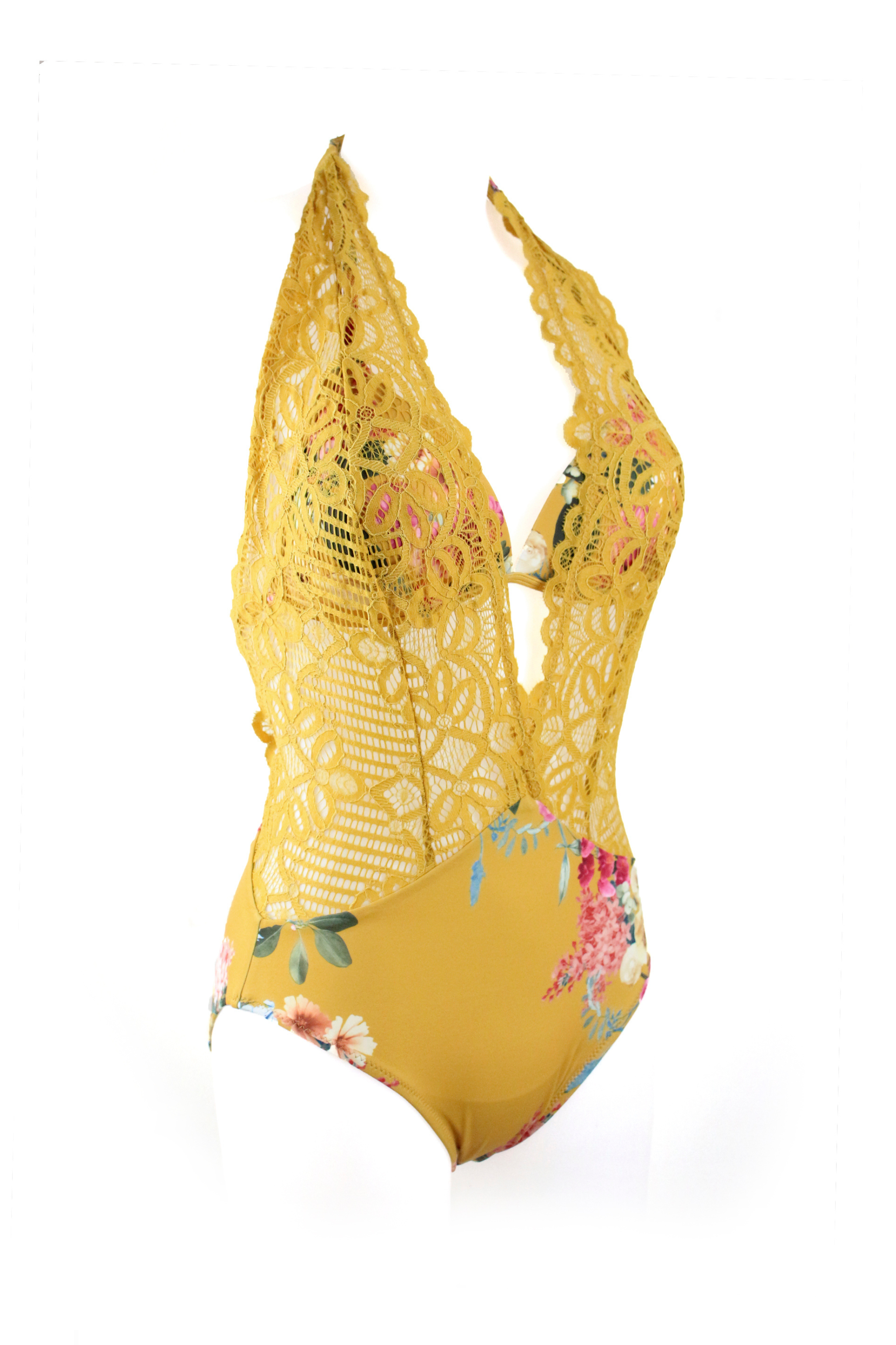 Jednoczęściowy strój kąpielowy FLOWERS MUSTARD Jednoczęściowy strój kąpielowy FLOWERS MUSTARD